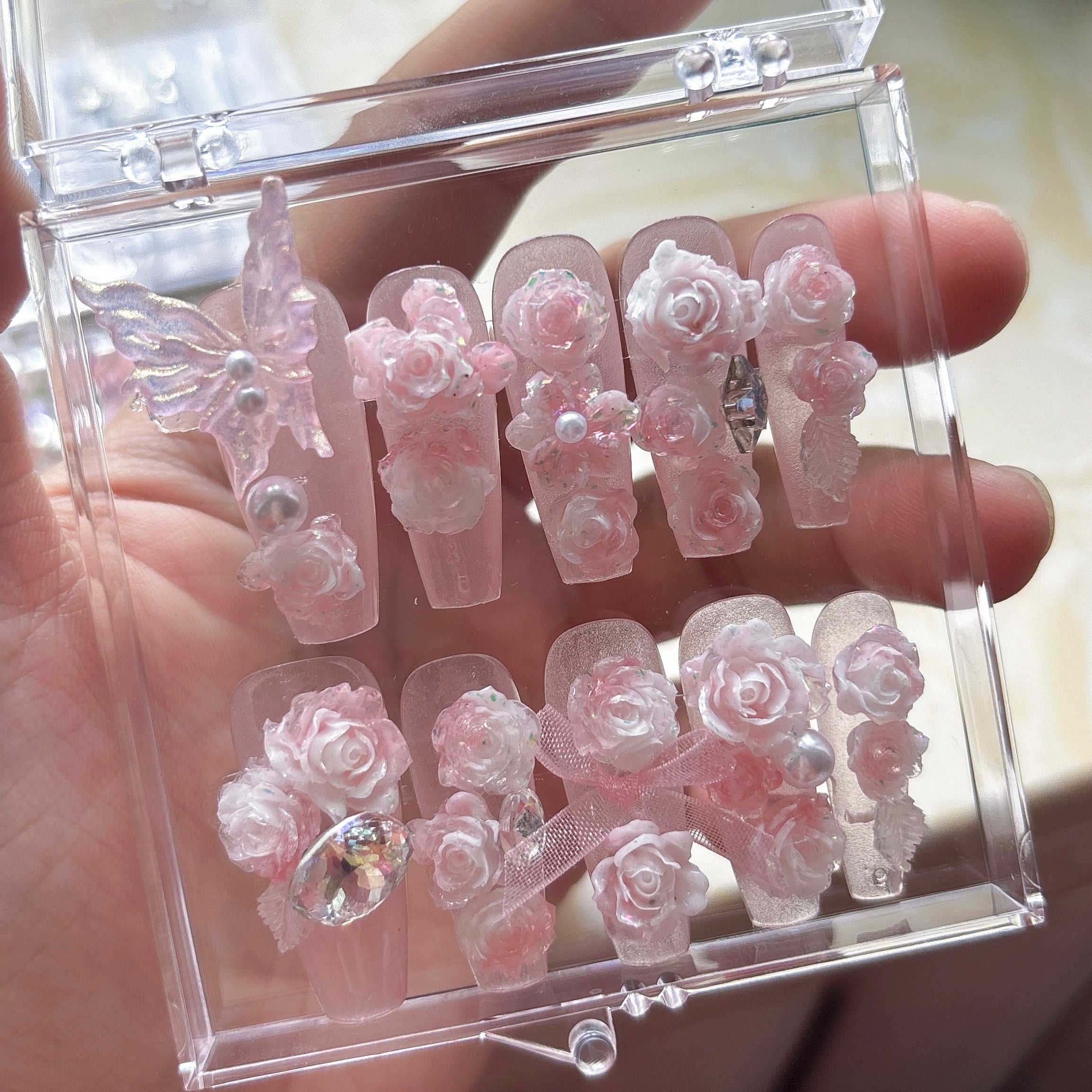 あなたの爪先に華やかさとエレガントな魅力をプラスするためにデザインされた、オリジナルのMサイズ ピンク系 バラ薔薇 ストーン パール ネイルチップです。このネイルチップは、美しいバラ薔薇と輝くストーン、そしてパールが調和したロマンティックなデザインで、特別な日や普段使いにも最適です。自宅で簡単に魅力的な指先を手に入れられるため、忙しい方でもスタイリッシュにおしゃれを楽しむことができます。特別なイベントやお友達とのお出かけに、ぜひご検討ください!